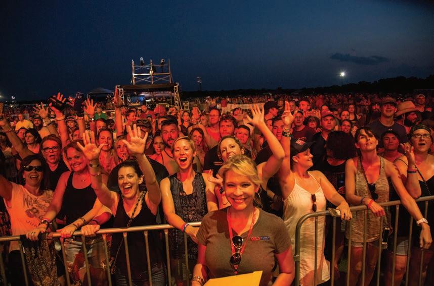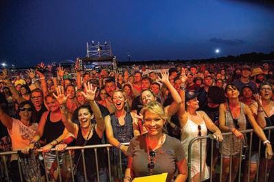(Top left): Fans lucky enough to get front-row viewing show their enthusiasm during a night show. G Fest offered four venues, including a large field and a couple of tents.