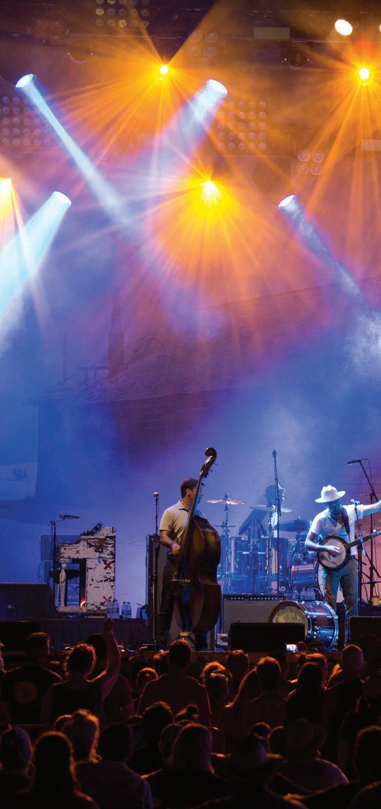 (Top right): Paul DeFiglia of the Avett Brothers does double duty on instruments. (Above): The Avett Brothers use strings of all sorts to entertain fans at G Fest. The string band performed on the festival’s main stage.