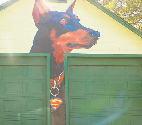The garage facing the alley behind a home at 1004 W. Okmulguee Ave. sports this depiction of a dog with a Superman tag.