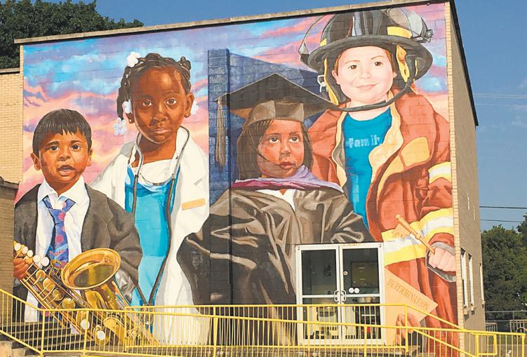 The Head Start building at Sixth and Denison streets had a large mural painted in 2005 by Lance Hunter, then an associate professor of art at Northeastern Oklahoma State University. The mural, titled “Our Future,” measures 24 feet by 35 feet.