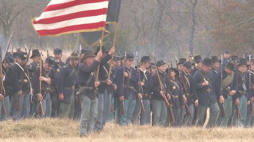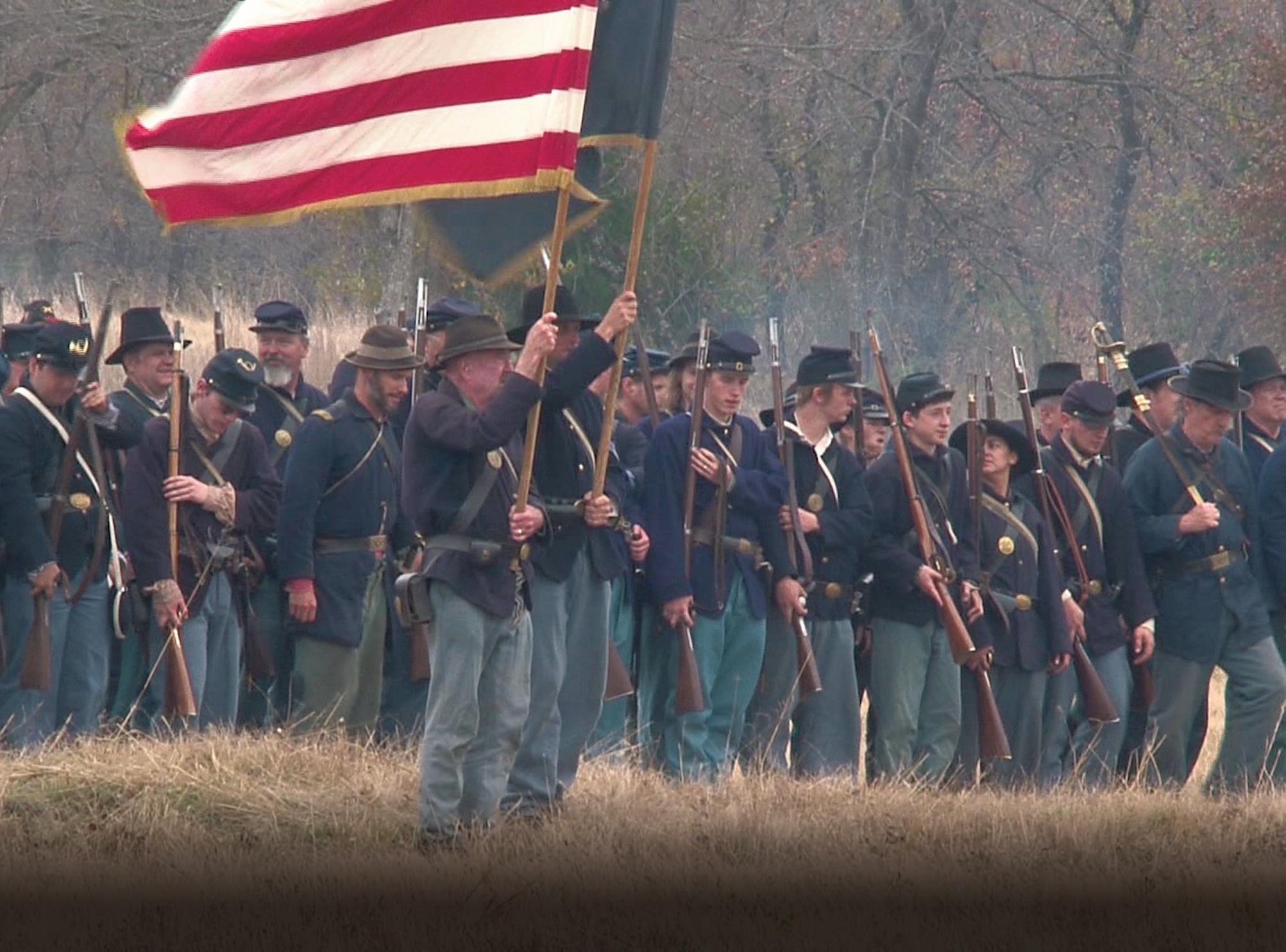 Union soldier re-enactors gather to do battle against Confederates in a re-enactment of the Battle of Honey Springs. Re-enactments will be Saturday and Sunday.