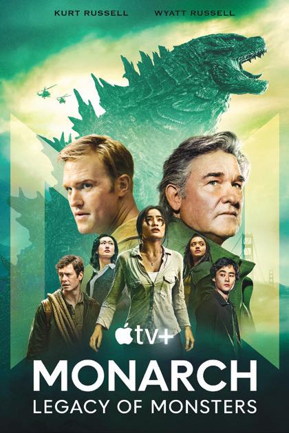 “Monarch: Legacy of Monsters” (Apple TV+ — Nov. 17, Series emiere) ollowing the thunderous battle bet ween Godzilla and the Titans that leveled San Francis, and the shocking elation that monsters e real, this series, based on Legendary’s Monsterverse, tracks o siblings following in their father’s footsteps uncover their family’s connection to the secree organization known as Monarch. Clues lead them into the world of monsters and ultimately wn the rabbit hole to my officer Lee Shaw ur t Russell and Wyatt ussell), taking place in the 1950s and half a century later where Monarch is threatened by what Shaw knows