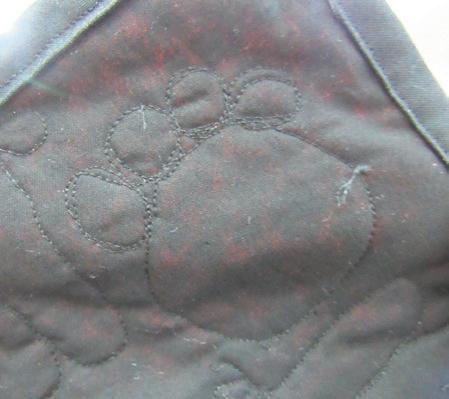Charla Vaught stitched a bulldog paw into a quilt she made for the Wagoner Education Foundation Fashion Show and Quilt Auction. This is the fourth year she has made and donated a quilt.