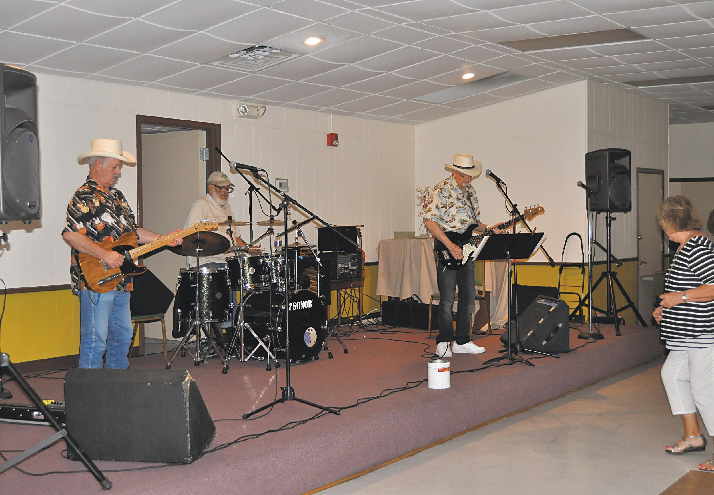The Hole in the Wall band gets together every Friday night to play a little country and a little rock ‘n’ roll at the Tahlequah Senior Citizens Center. Band members, left to right, are David Filden on guitar, Mel Buckner on drums and Jim Forst on lead vocals.