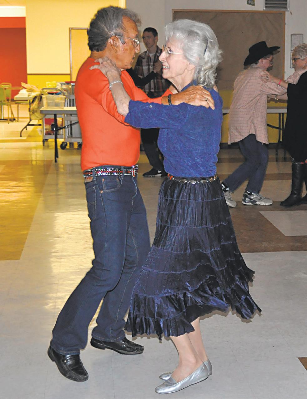 Elizabeth Kelly and Bill Rogers get down with the music at the Friday night dance at Tahlequah’s Senior Citizen Center. Kelly, 93, drives from Siloam Springs, Arkansas, every Friday night to dance in Tahlequah.