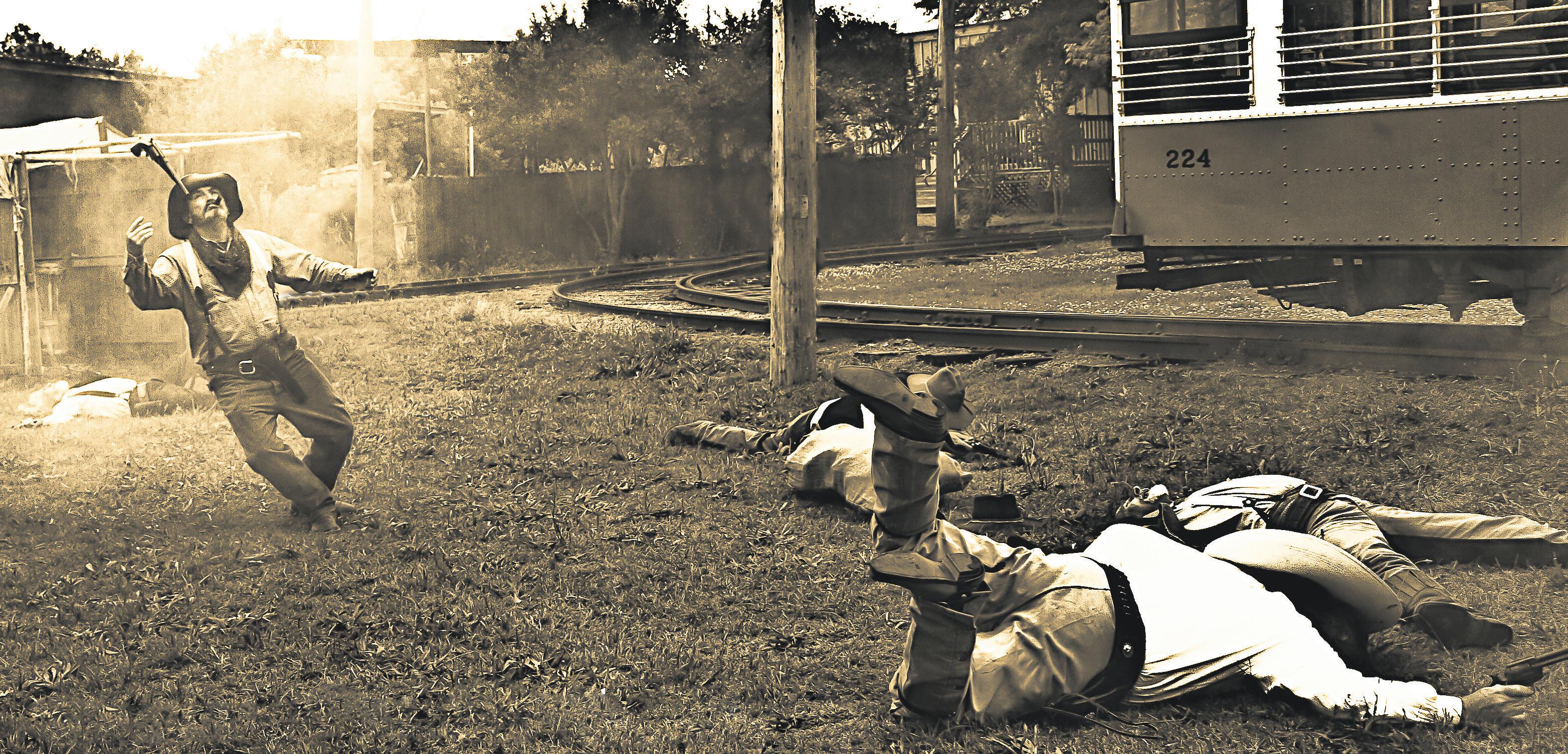 “You gotta do funny stuff or you lose the kids,” Miller said. “And the gunfighters are working closely with the bands. We shoot band members, too. We’re not picky.”