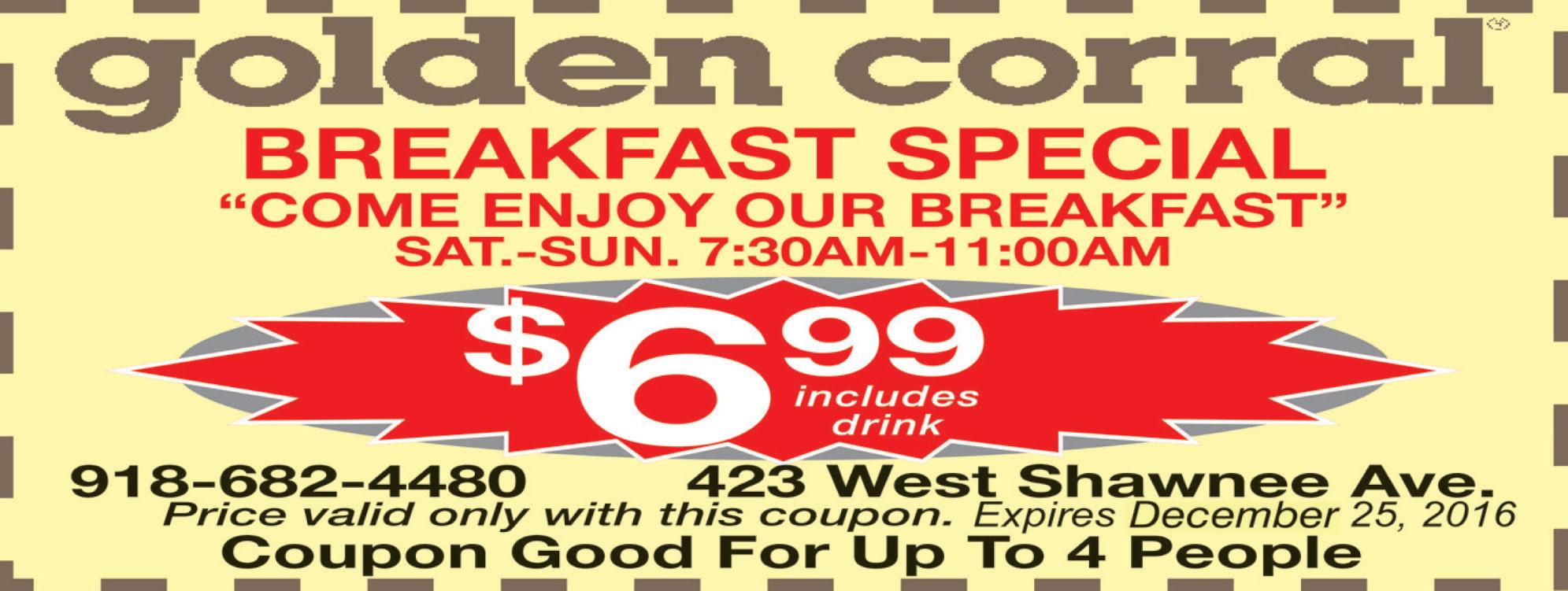 ALL-YOU-CAN-EAT DAY BENEFIT BREAKFAST, 7 to 10 a.m., third Saturday of the month, Disabled American Veterans Chapter 7, 4815 W. Okmulgee Ave. Cost: $5, adults; $2, children younger than 12. Menu: Eggs, sausage, biscuits, gravy, pancakes, coffee, milk and juice. Proceeds directly support local Disabled American Veterans and their families. BINGO, 6:30 p.m. every Mon-