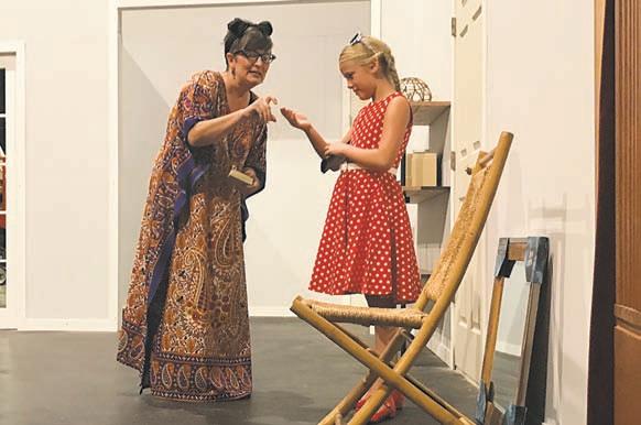 Randi Williams, who plays Christine, and Wendy Yarberry, who plays Miss Fern, the schoolteacher, discuss Rhoda’s behavior in school. Every scene of “The Bad Seed” is full of clues, said director Chrissie Wagner.