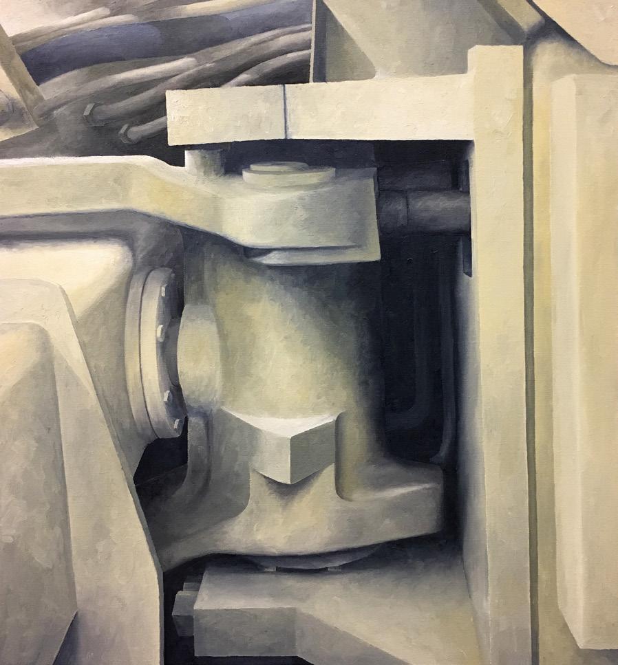 The Guts series emerged from my growing fascination with the inner-workings of heavy machinery - their pipes, gears and steel forms. While my initial interest concerned their form and structure, it evolved to include and investigate the abstract architectural spaces they create. Every alcove within a machine holds a unique set of contradictions - darkness and light, danger and safety, chaos and order. In this series, I seek to identify, sharpen and evoke these dualities.