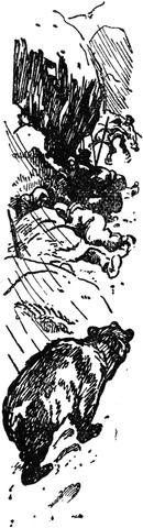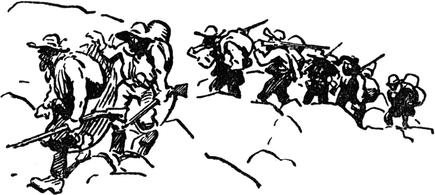 Doch noch ließen sie den Mut nicht sinken. Große Feuer flammten allerorten im Tale auf. Aber sie reichten nicht aus, um die Unglücklichen zu erwärmen. Der Schneesturm brauste, — aber sie fanden den Weg nicht mehr, der sie aus dem bösen Lande hinausführte.