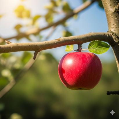 Una manzana en la rama de un árbol: si cae, convierte su energía potencial en cinética.