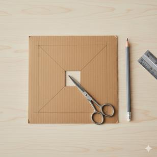 Recorta un cuadrado de 15 cm x 15 cm en el cartón.