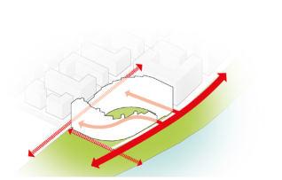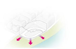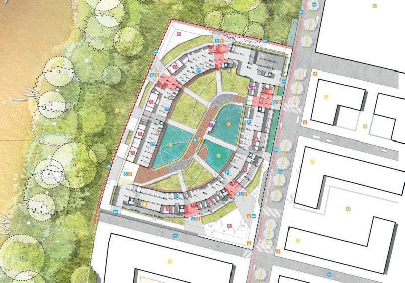 El río Sinú como medio de transporte, la ronda y la vía principal son factores importantes los cuales deben dialogar entre si mediante la permeabilidad del edificio.