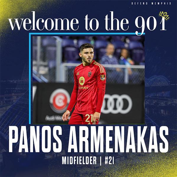 Memphis 901 FC acquired 2023 USLC title winner Panos Armenakas via transfer from Phoenix Rising FC!
