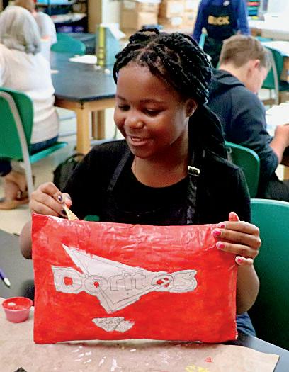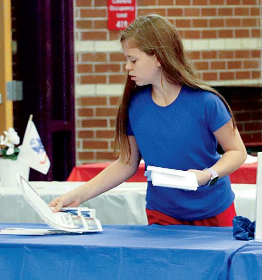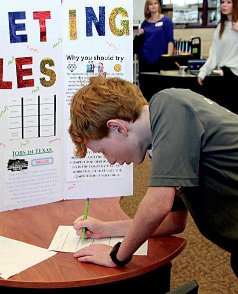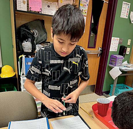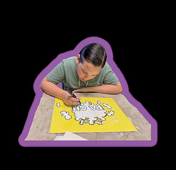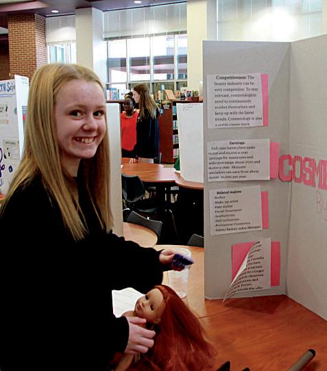 3. Janna Lendway (8) cuts paper to add special bling to her poster.