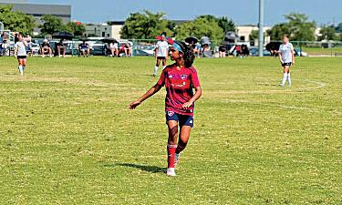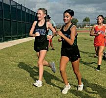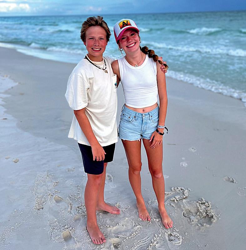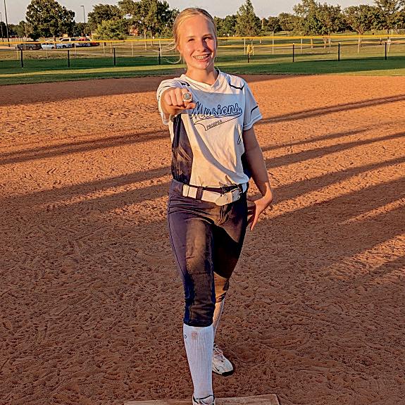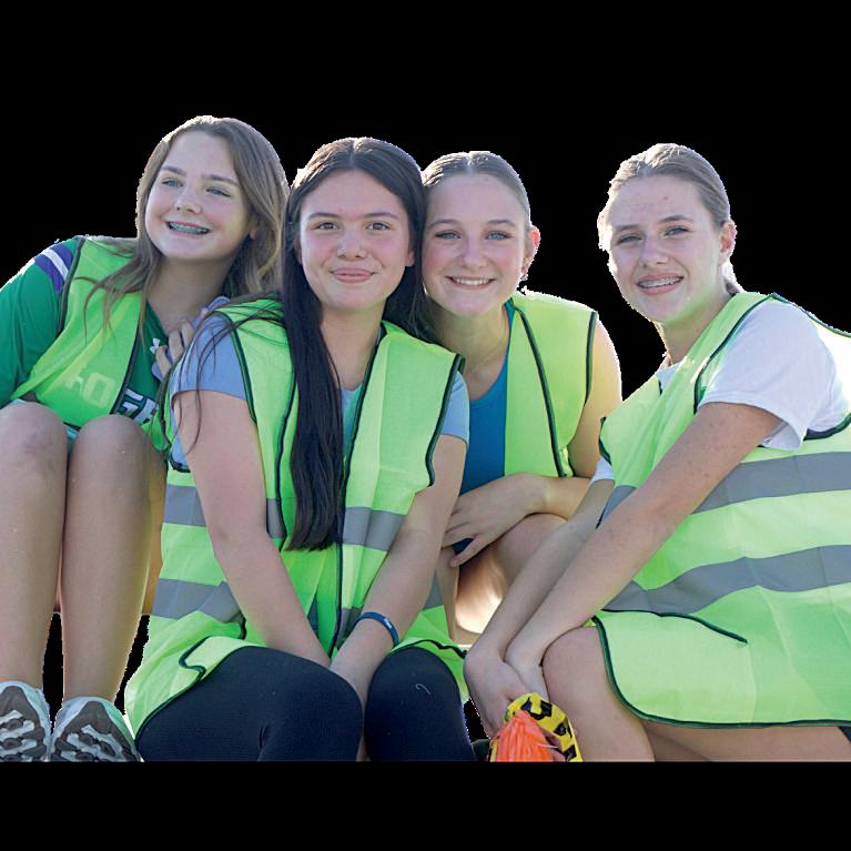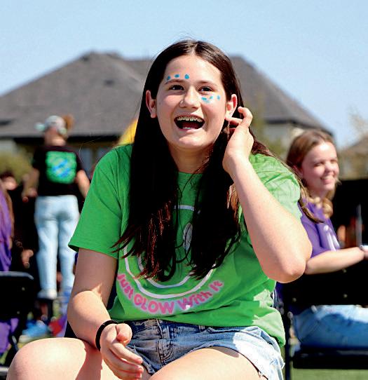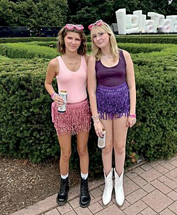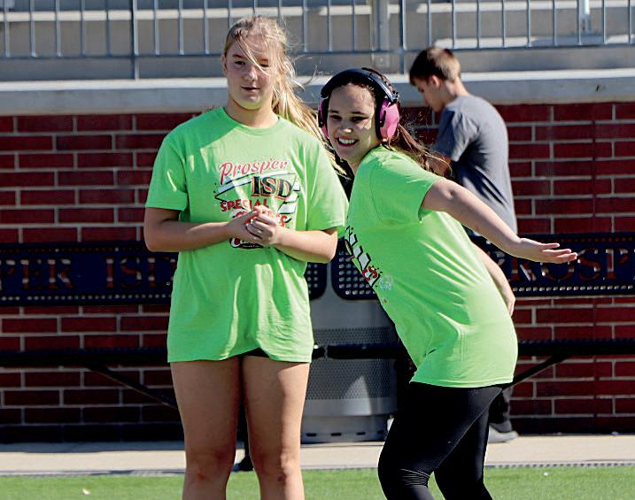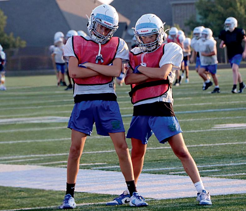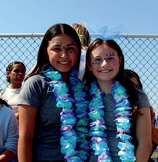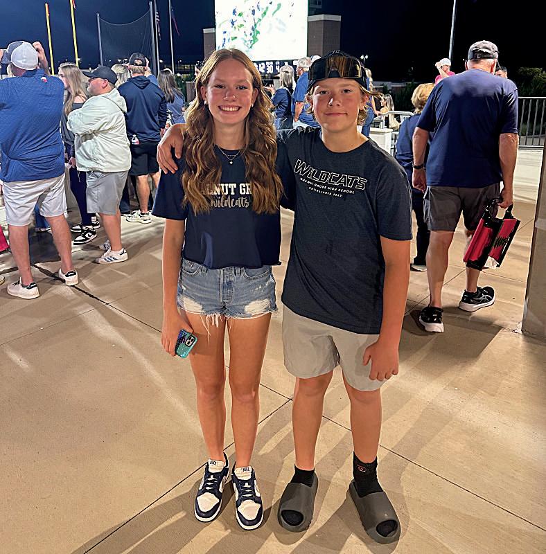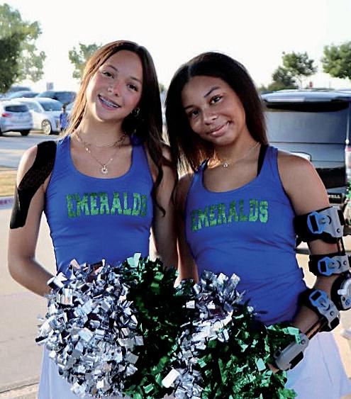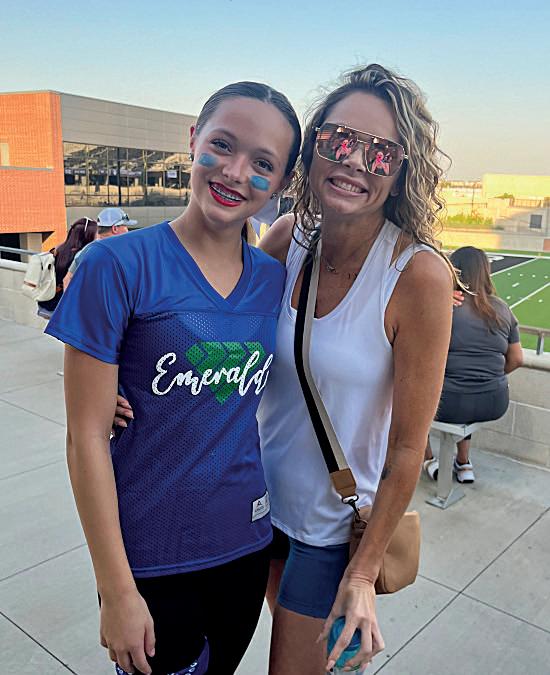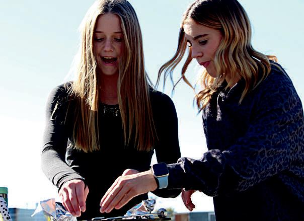 Sam Dixon (8) and Hailey Nohr (8) bask in the glow of the sun on game day.