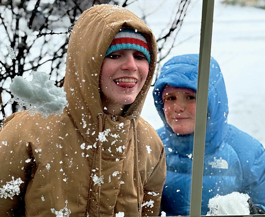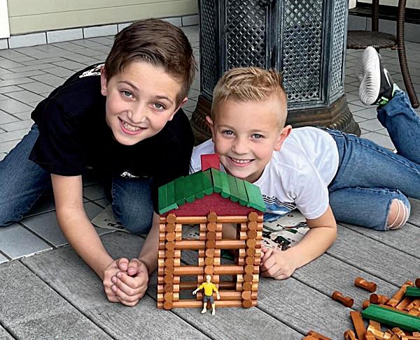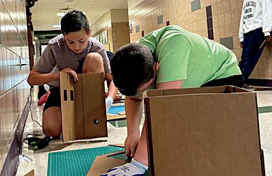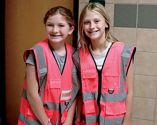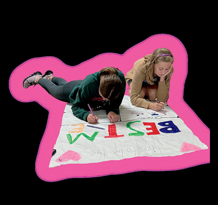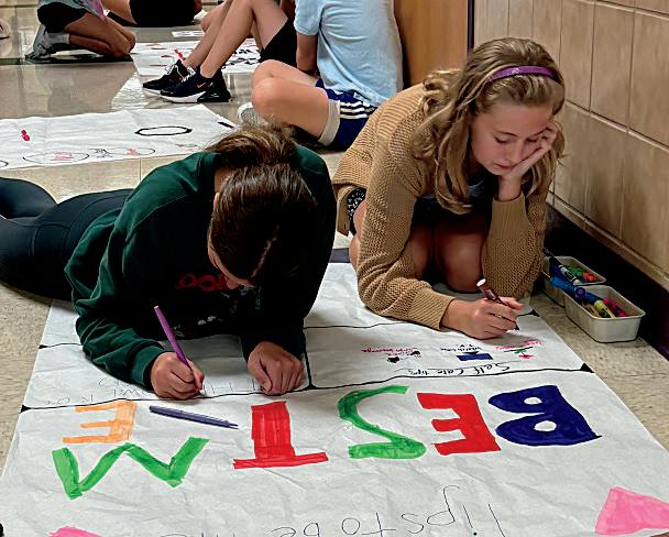 2. Sadie Calvert (6) and Anna Kennedy (6) work together to create an encouraging message.
