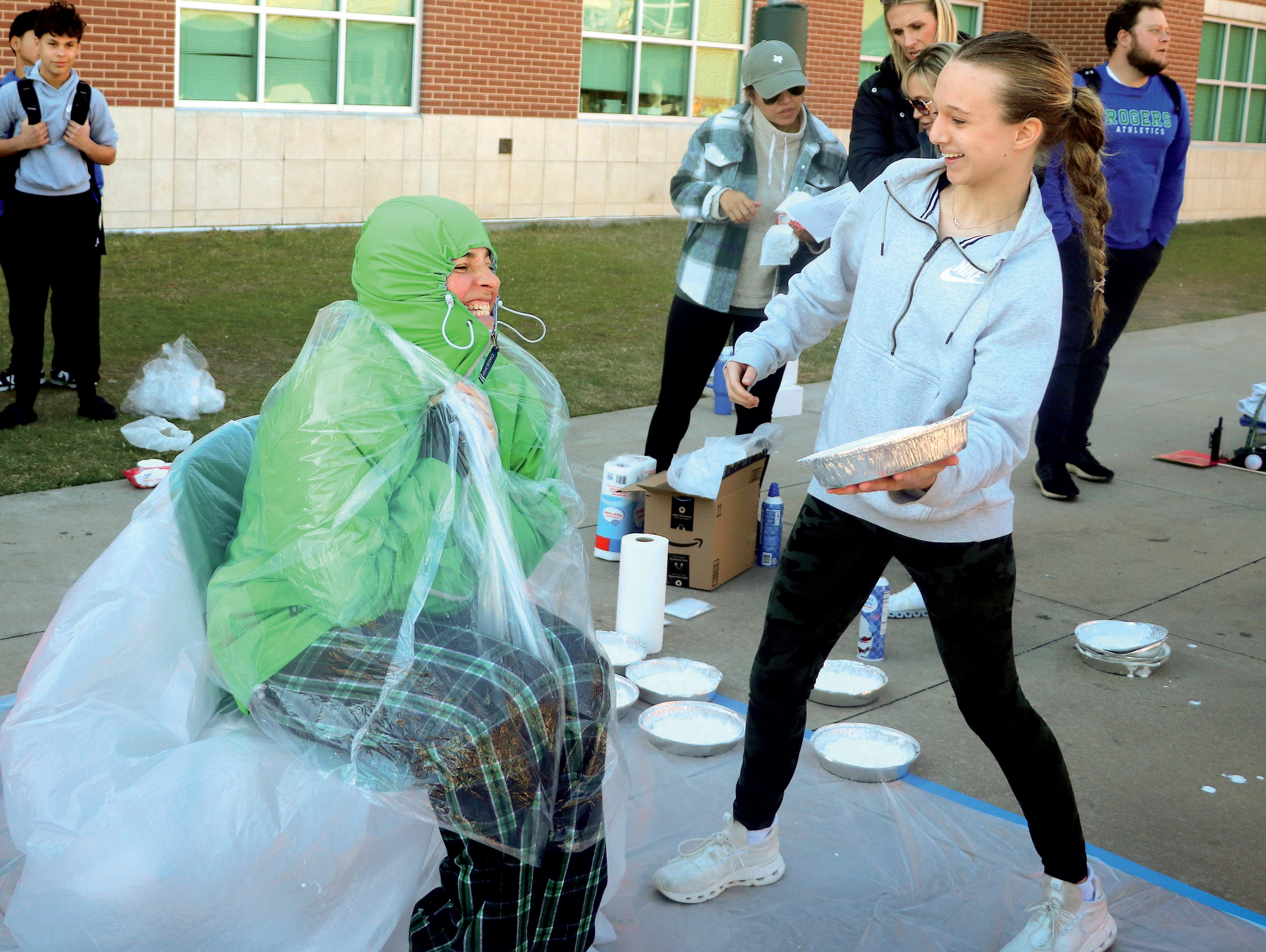 Khloe Bakewell (7) gets ready to pie Coach Richards in the face.