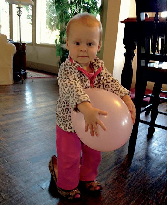 Riley Shannon (7) prepares to throw a water balloon.