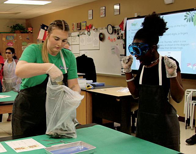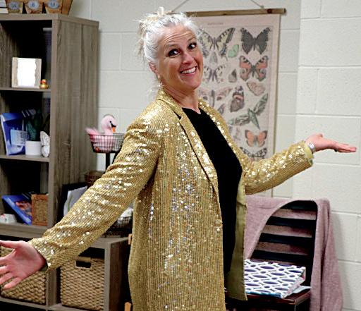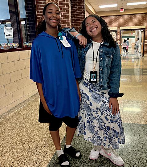 1. Solana Chism (8) and Heaven Henderson-Powell (8) dress as their favorite teachers.