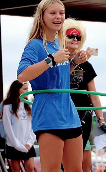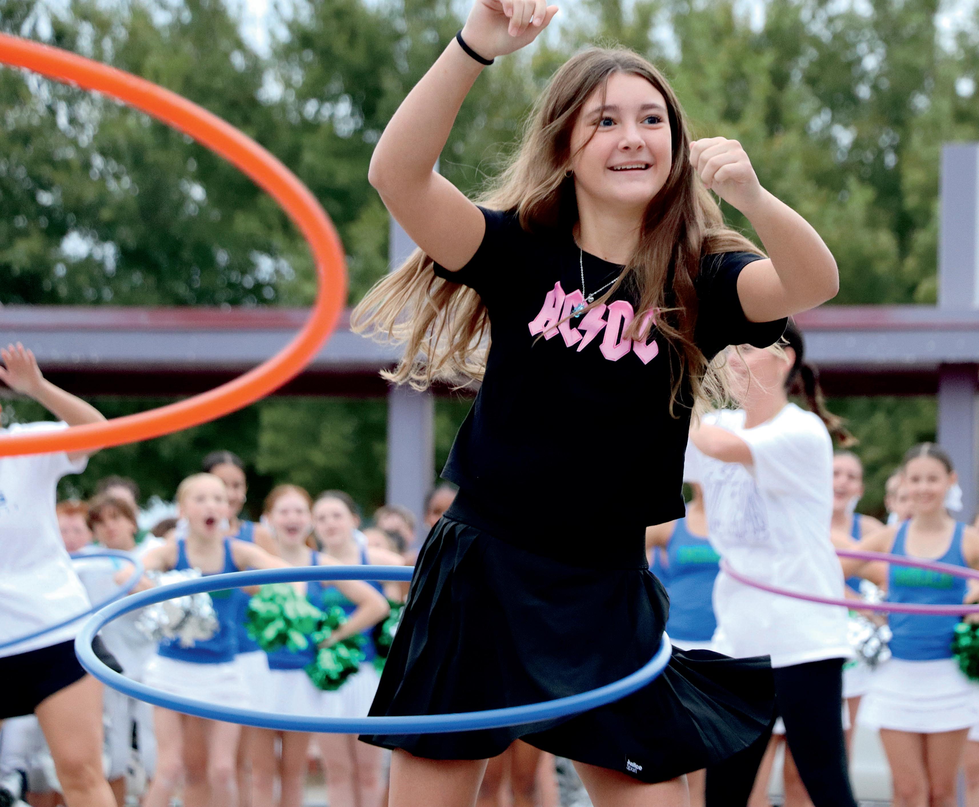 1. Keira Rehman (7) competes in the hula hoop competition with other students and teachers and she wins first place!
