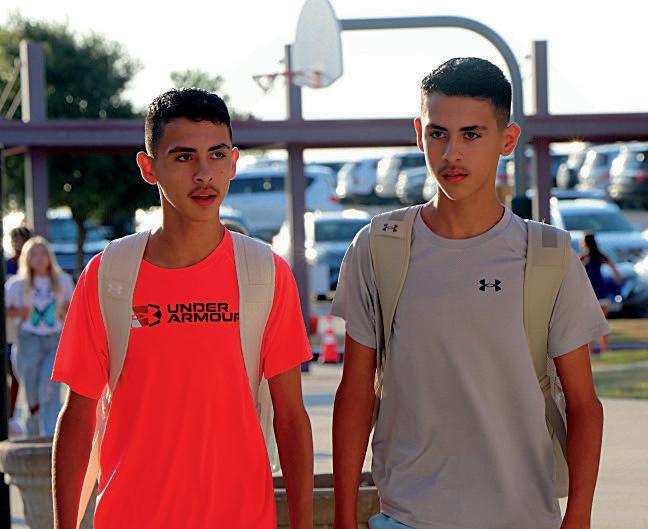 Juarez (7) walk from their car to the new "front door" by the cafeteria.