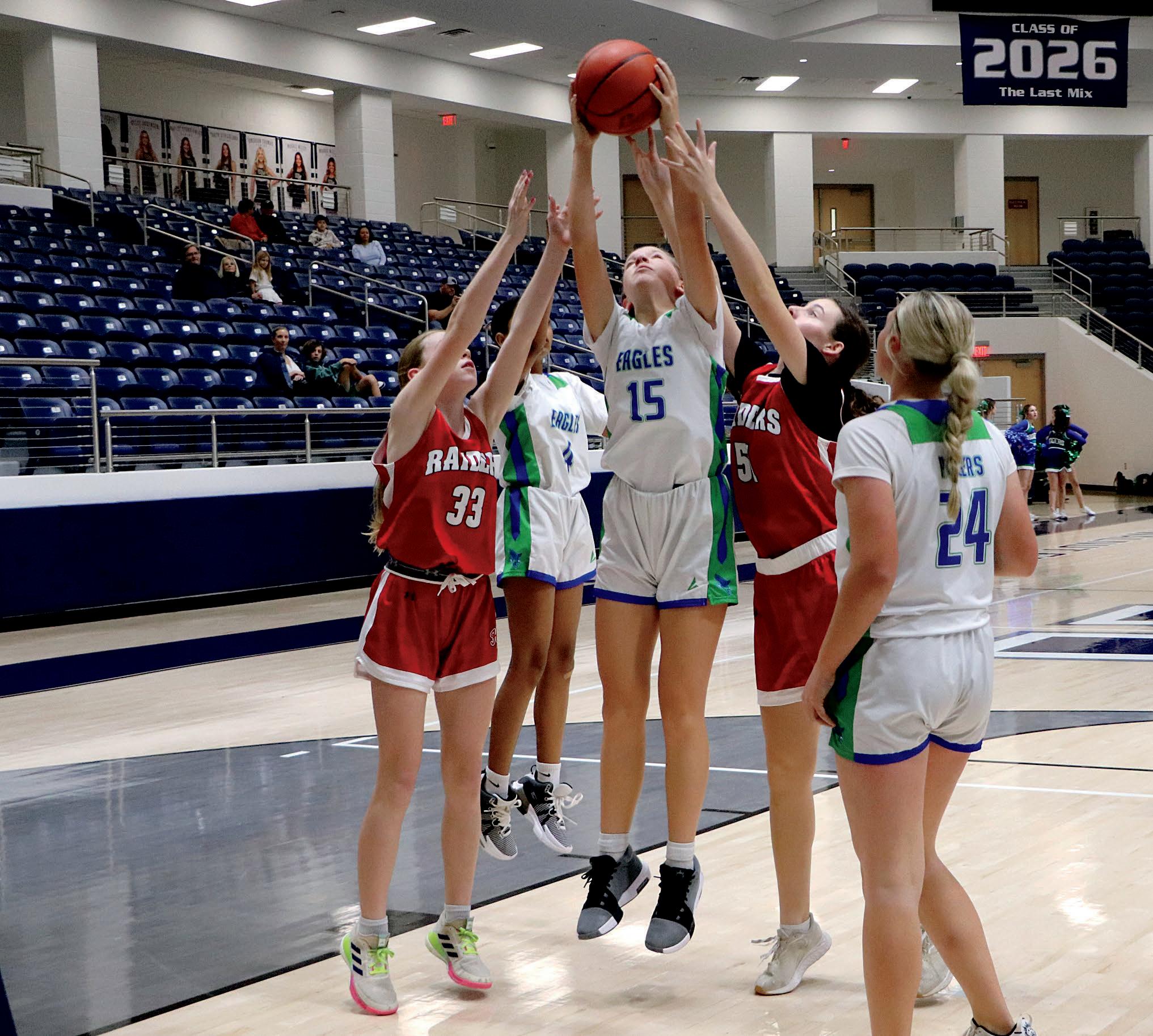 Avni Patel (8), Charli Carnathan (8), Campbell McFarland (8), Emma Yould (8), Caroline DeVito (8), Hadley Wilson (8), Caroline McMahan-More (8), Mallory Wyatt (8), Addie Carson (8), Addi Miller (8) and Brianna Davern (8) attend Jostens Summer Workshop at Texas Womens University.