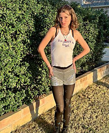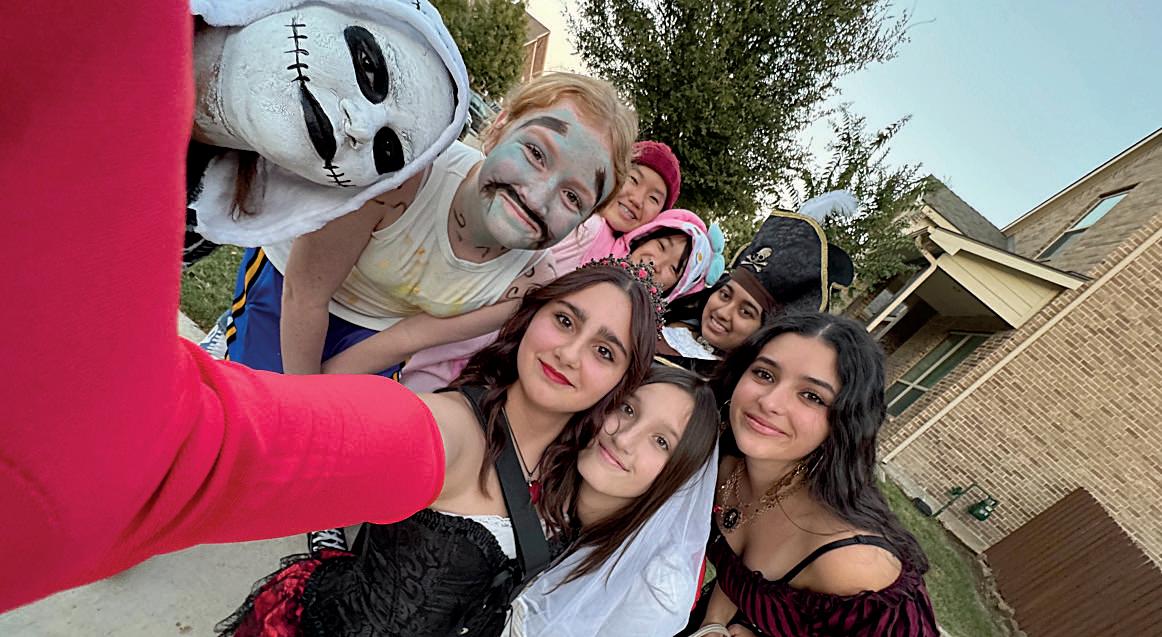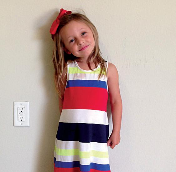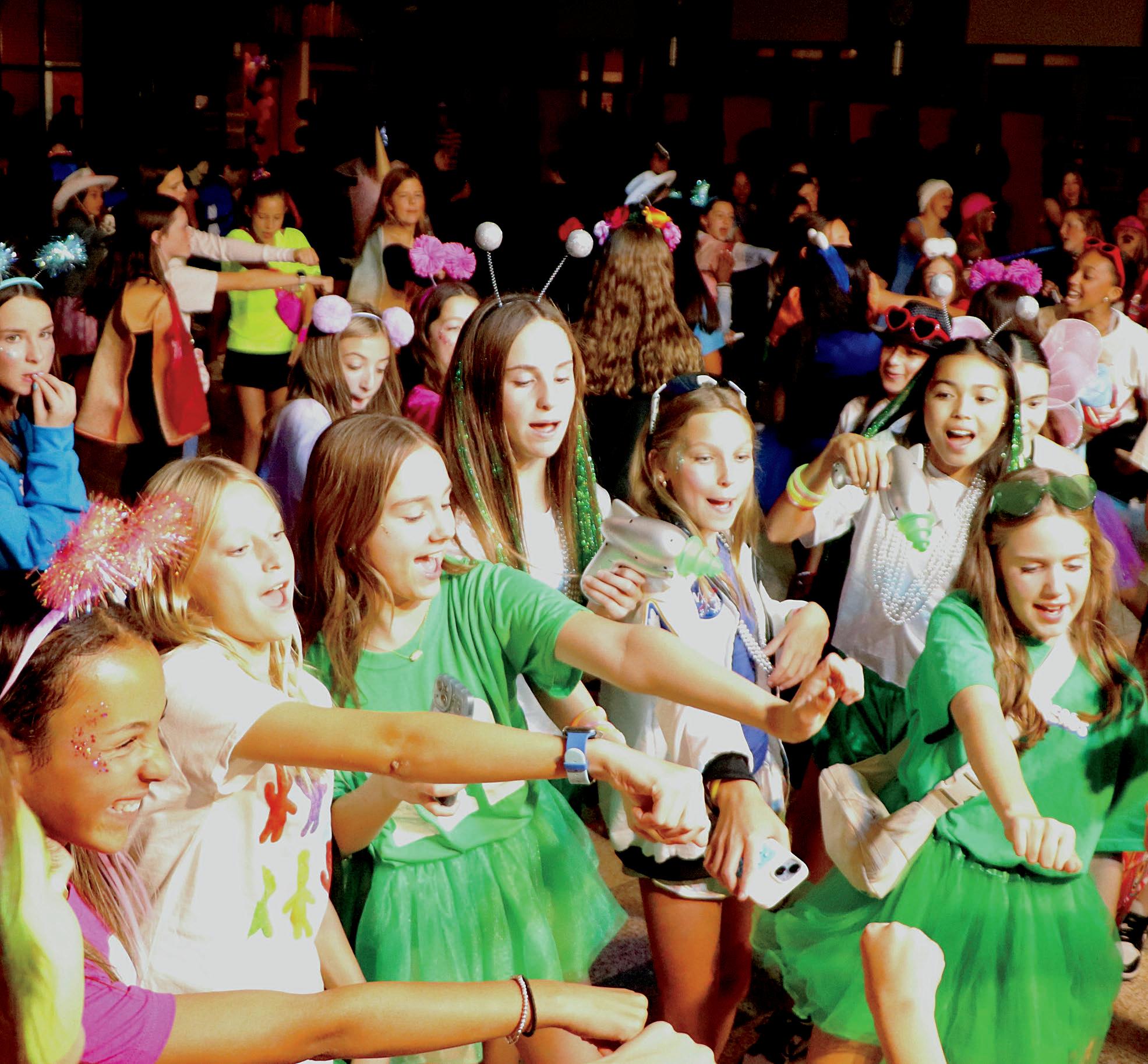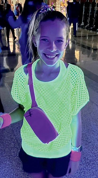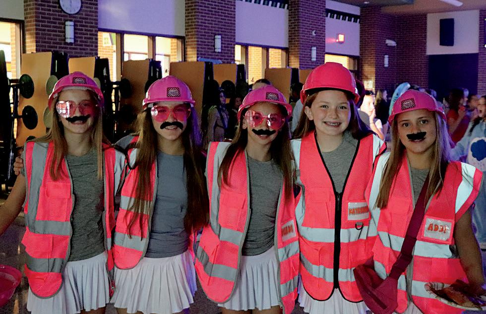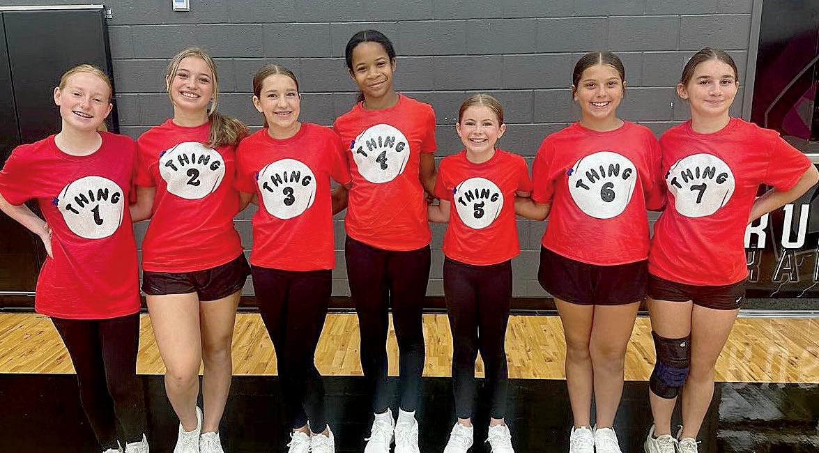 Emily Beavers (8), Lilly House (8), Addison Carson (8), Nola Collier (8), Harper Hise (7), Talya Giatti (7) and Ashlyn Carey (8) dress up as Things for drill team camp.