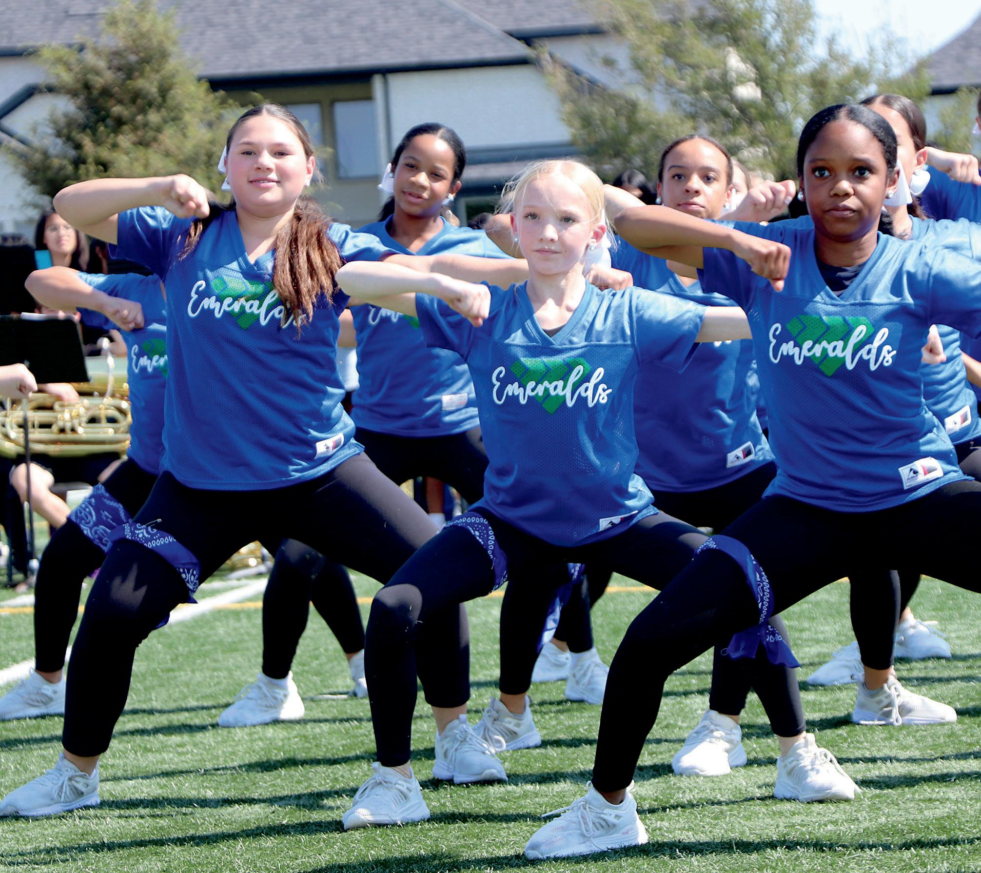 Allisana Ceccarelli (8), Katelyn Brase (8), Brooklyn Conroy (8), Presley Blankenship (8) and Riley Legner (8) jump for joy at the HOCO parade.