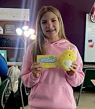 Bright rewards. Each week, one person passes the Sunshine Squishmallow and Lemonhead candies to someone they think worked hard throughout the week. That person keeps the Squishmallow until the next Monday and think about who they want to pass it to next!