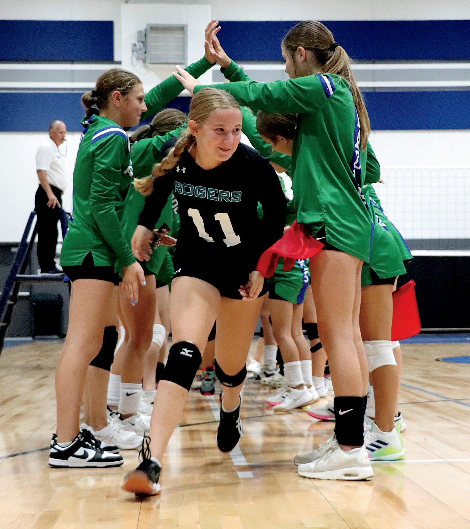 Get hype! Students gather in the courtyard before school to wish our Rogers athletes good luck and show their school spirit. Athletes from volleyball and cross country gave a recap of their season so far and invited the students to attend their next event. Sienna Wilber (8) said, "The thing that made me smile the most at the Game Day Gathering was seeing all the 6th graders watch us and learn what they will be able to do one day."