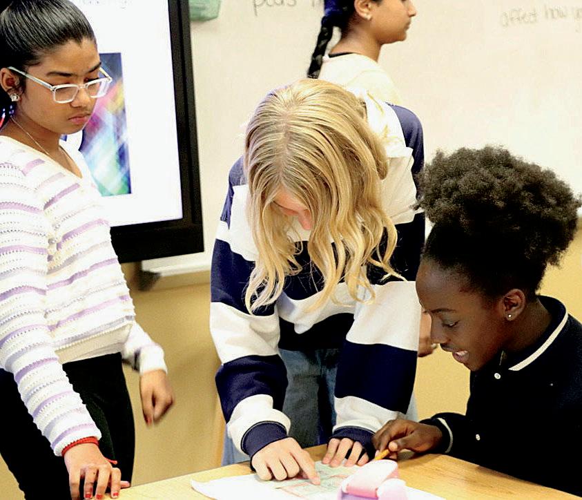 1. Abby Zuehl (7), Sophia Akibola (7) and Geetha Konakalla (7) work on their missions for Texas history.
