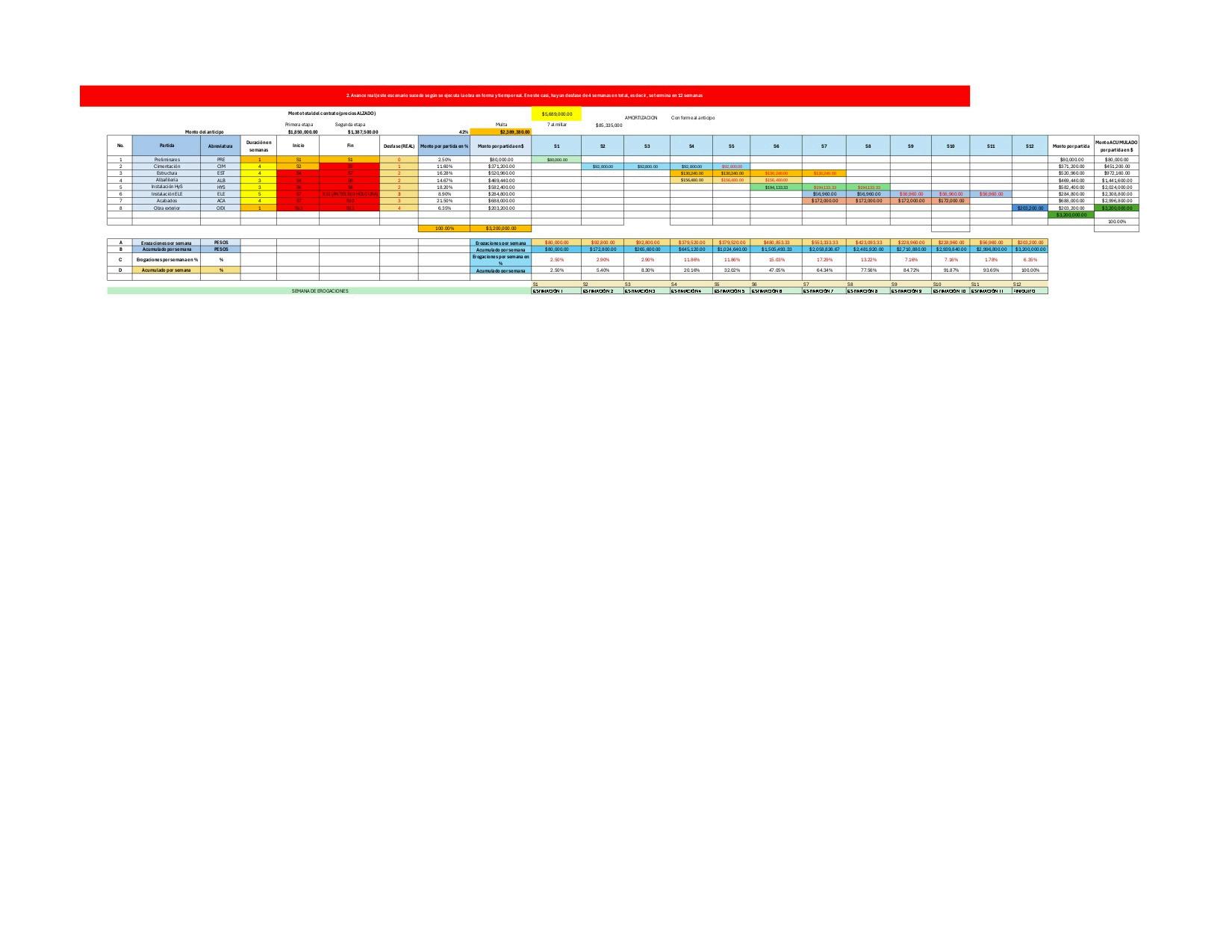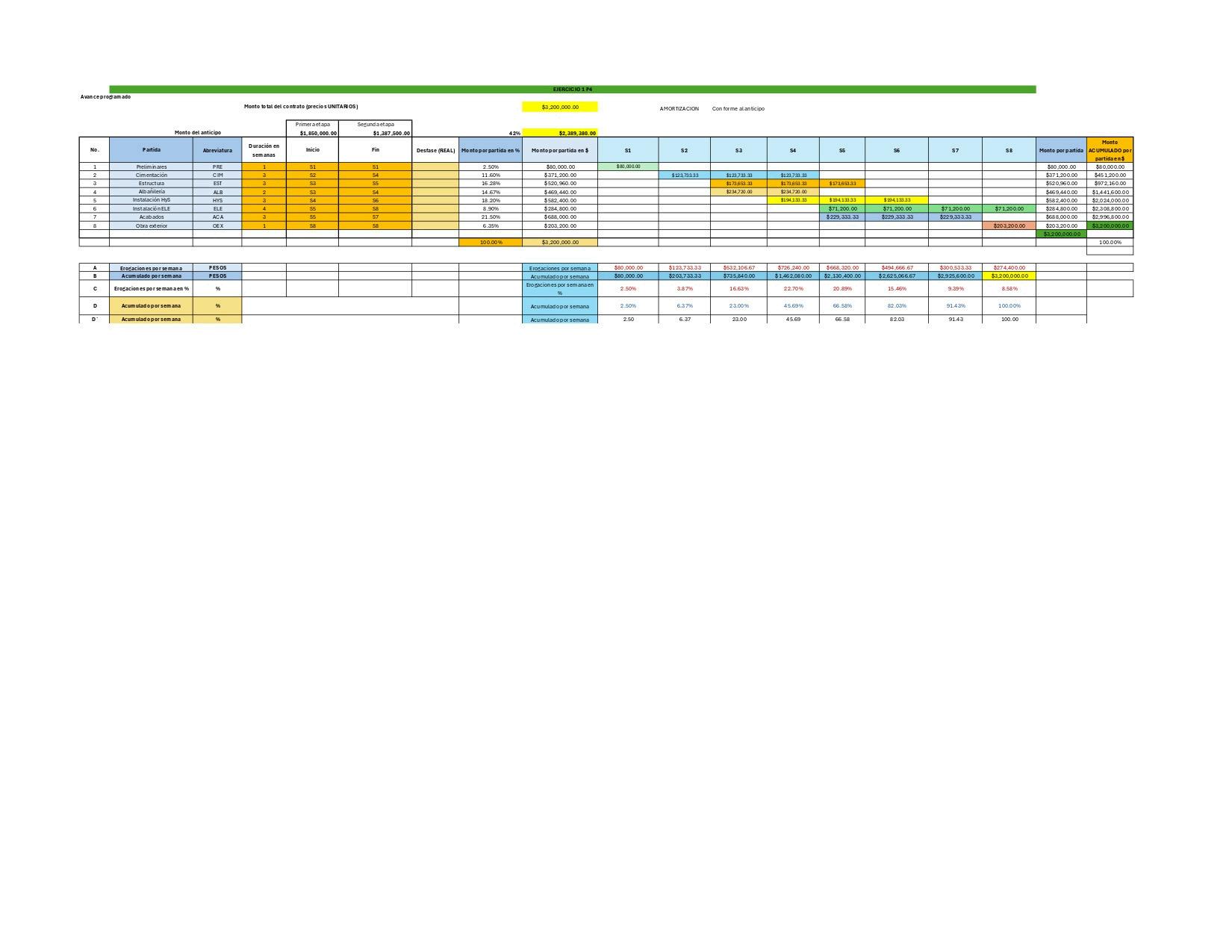 Todo el dinero invertido en la obra AMORTIZACIÓN: se refiere al proceso de distribuir y liquidar los anticipos otorgados al contratista