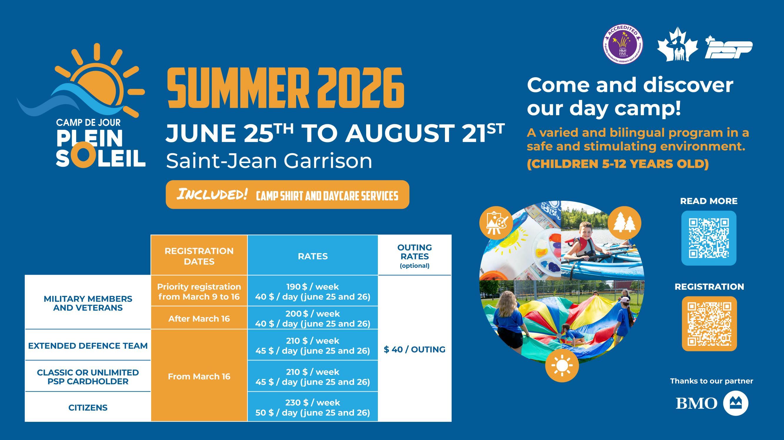 Camp de jour Plein Soleil : camppleinsoleil@cfmws.com