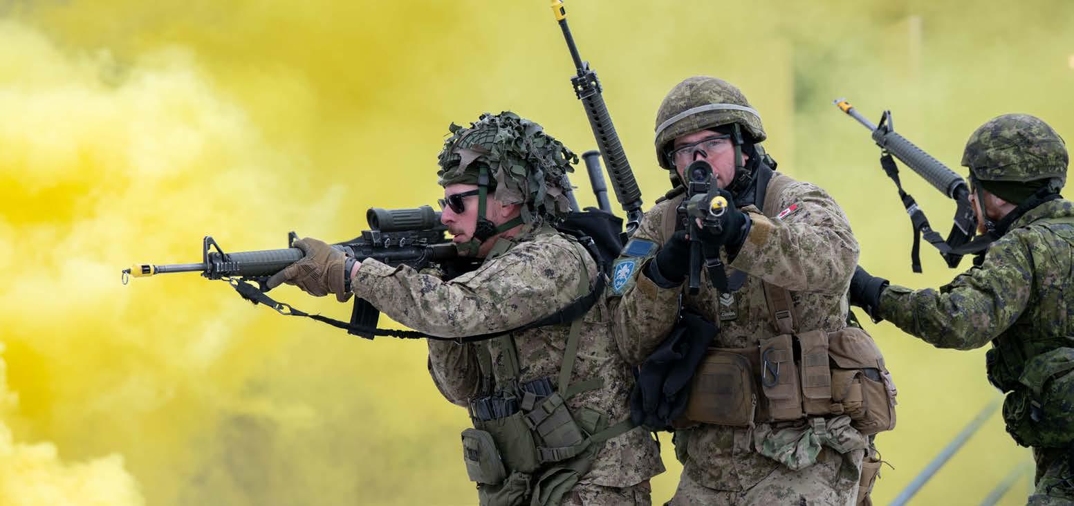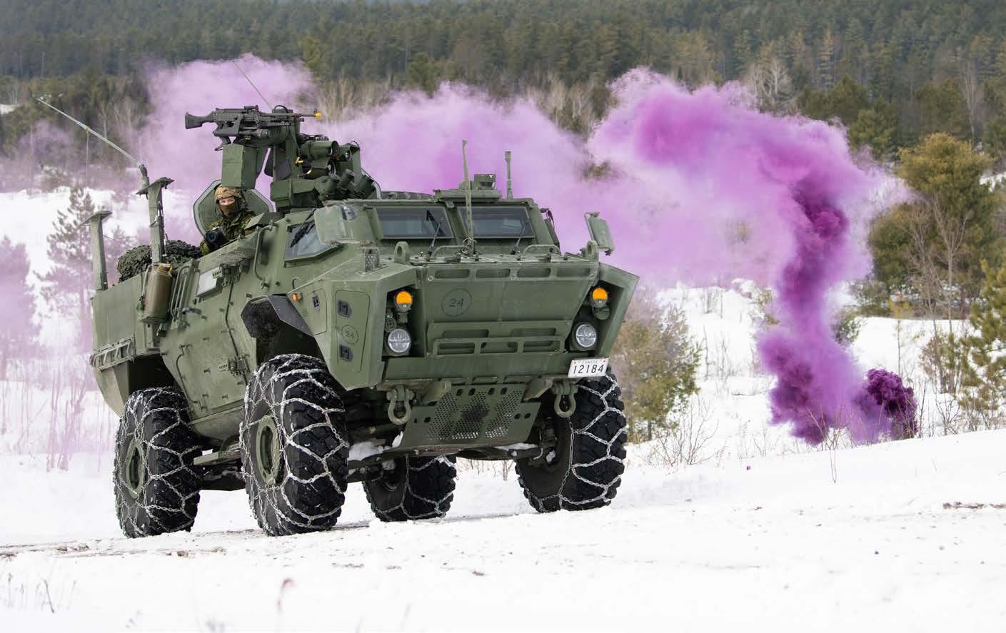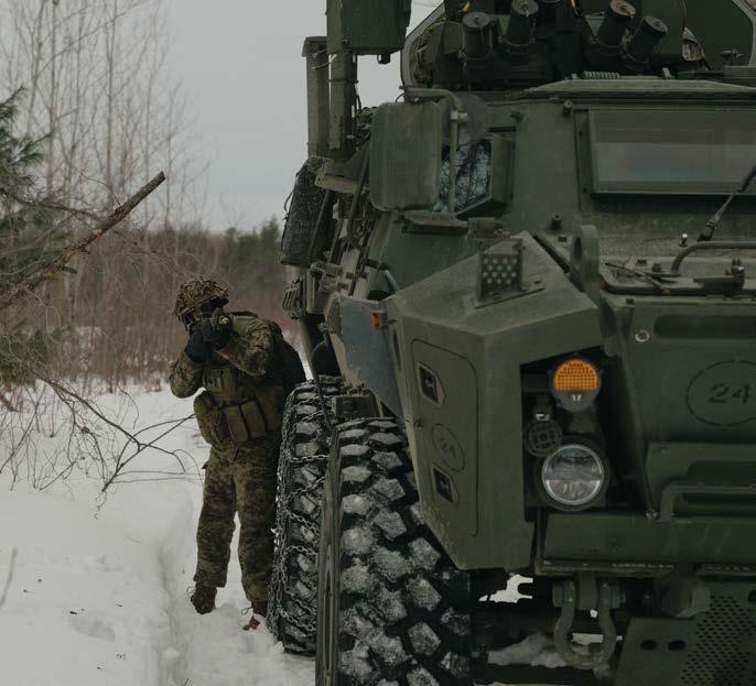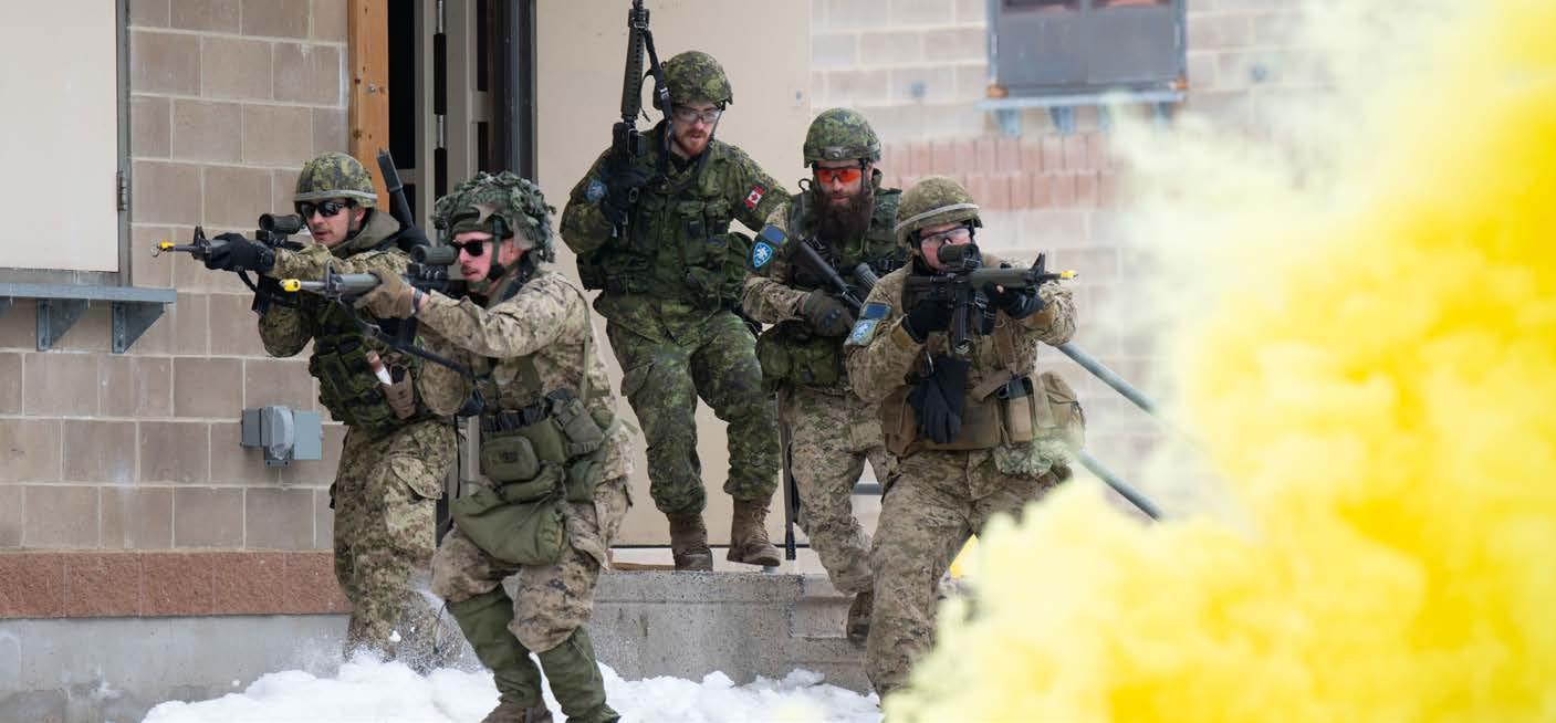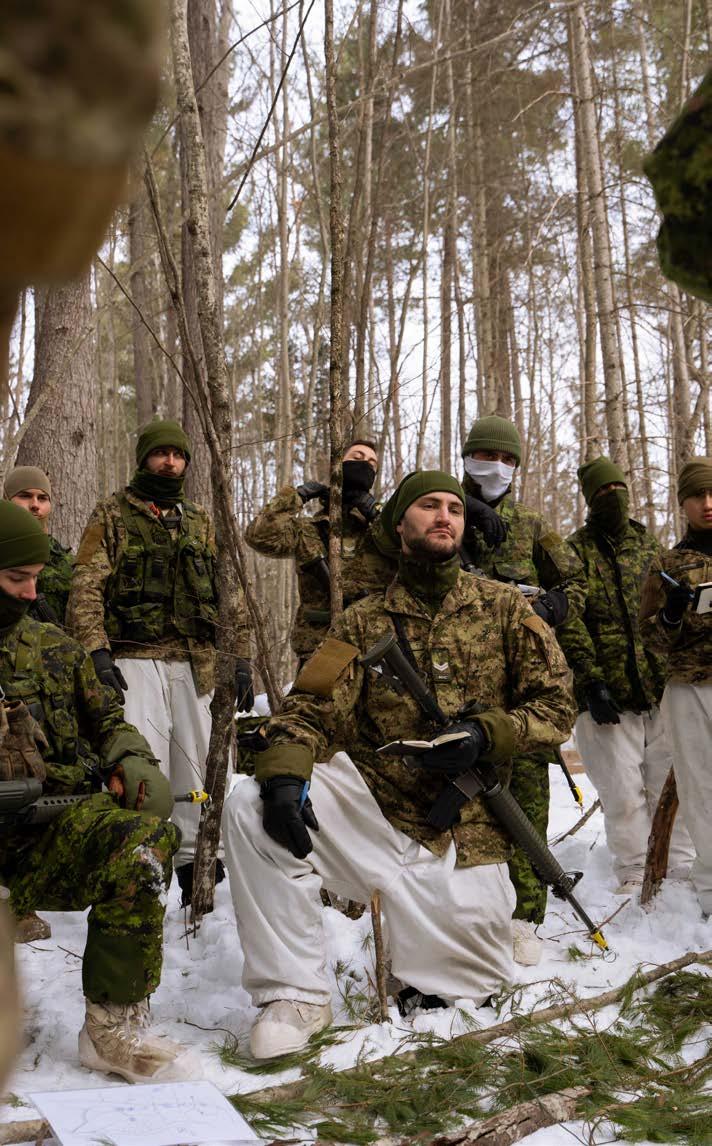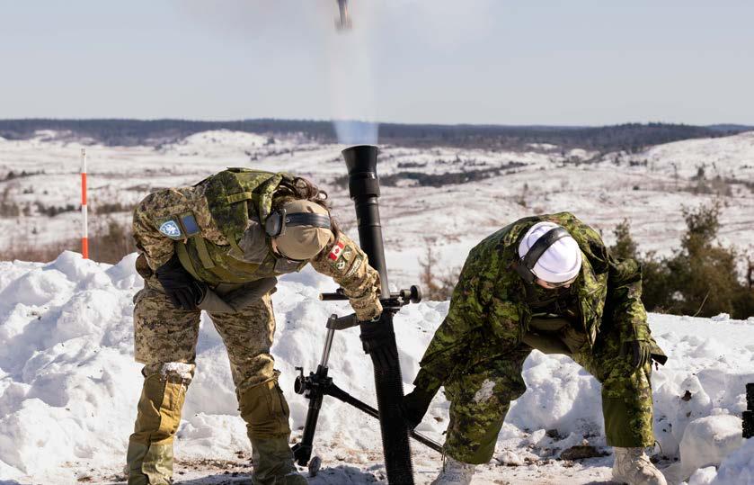 in it for four days. We wanted to give them as much tactical experience and hardening as possible,” says LCol Turcotte. Movement tactics, conventional raids, urban raids, mortar manoeuvres, combat engineer operations and reconnaissance armoured activities were among the manoeuvres in which the reservists took part.