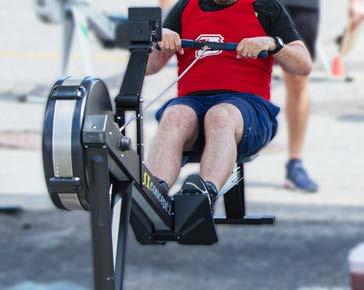 As a team or individually, participants must complete two kilometres on the rowing machine, five kilometres on the stationary bike (spinning) and two kilometres of running.