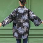 Pièce unique exprimant le raffinement japonais, réalisée à partir d’un kimono tomesode recyclé. Peut aussi se porter ceinturée. Taille S. Nettoyage à sec conseillé. Ceinture en soie noire fournie. 199 €.