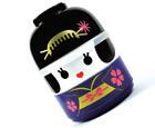 8. Kokeshi Sakura Kokeshi vêtue d’un kimono orné de fleurs de cerisier qui chante la mélodie traditionnelle Sakura, sakura. Réalisée par un artisan de la région de Gunma. Grand choix disponible. 13 cm. 26 €.