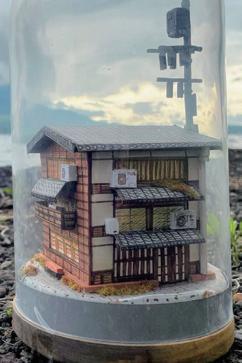 « En tant qu’illustrateur, j’ai toujours été attiré par ce qui est éloigné de mon quotidien et décalé. Je suis tombé amoureux du Japon en août 2015. L’ambiance mélancolique des ruelles du quartier Minami Aoyama, la signalétique en kanjis et hiragana, l’avenue Omote Sando, entre autres, m’ont séduit. Tout cela a éveillé en moi une attirance, tant sur les plans graphiques que sensoriels et émotionnels, pour le Japon actuel et ancien. Lors du Covid, en 2020, j’ai dû annuler mon cinquième voyage au Japon. Mon rêve d’alors se brisant, je me suis consolé en lançant un projet de maisons miniatures d’inspiration japonaise réalisées à la main. »