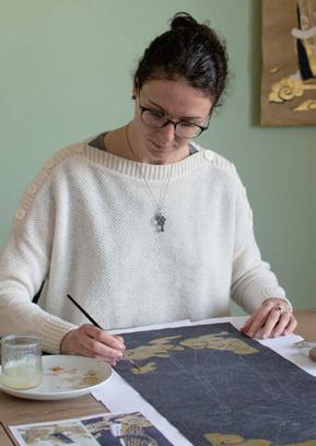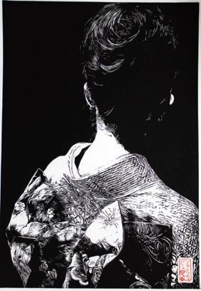 « Lorsque je me suis formée à la fabrication du papier washi, lors d’un séjour au Japon, ma fascination pour ce pays devint une passion. Depuis, je me rends tous les ans sur les anciens chemins de pèlerinage pour randonner dans les montagnes pendant plusieurs semaines, en logeant chez l’habitant. Je suis fascinée par l’art japonais de la taille, qui imite les arbres et leurs formes tortueuses que je retrouve sur les chemins de montagne. Les images que je grave sur cuivre sont toutes inspirées de mes souvenirs. » https://laborderie.site/gravure