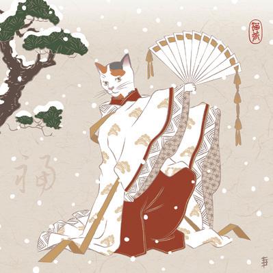 « C’est en feuilletant les livres d’estampes japonaises de mon collège que j’ai découvert le Japon. En 2021, lorsque je deviens illustratrice professionnelle, mon objet d’exploration artistique se porte tout naturellement vers ce pays, son raffinement et ses arts. Mon activité me permet d’effectuer des recherches culturelles que je transcrits dans mes peintures, dont les héros sont des neko (« chats » en japonais). Leurs aventures originales font découvrir avec élégance et humour des thématiques méconnues du Japon ancien. »