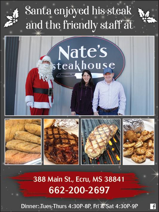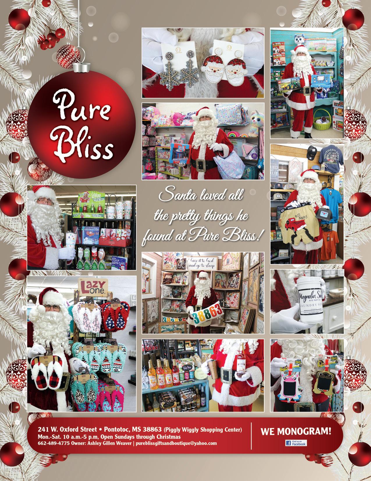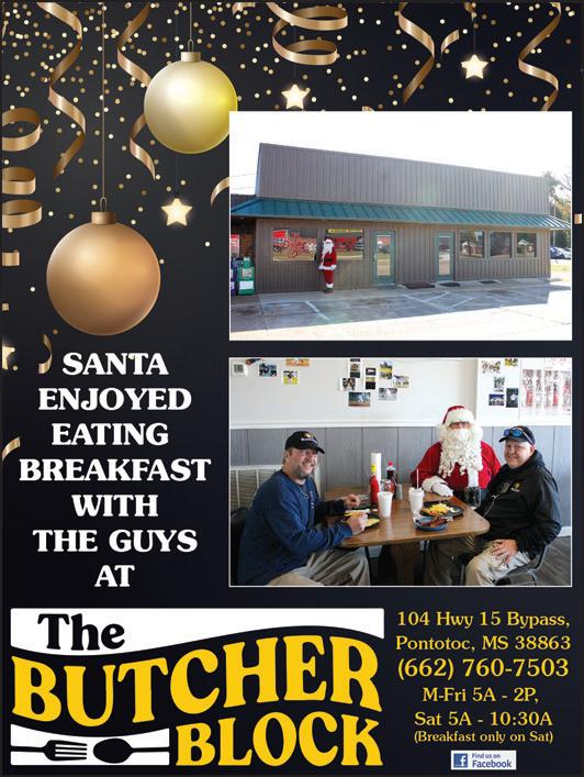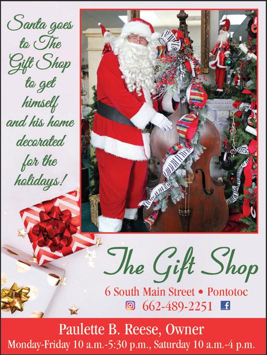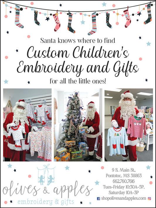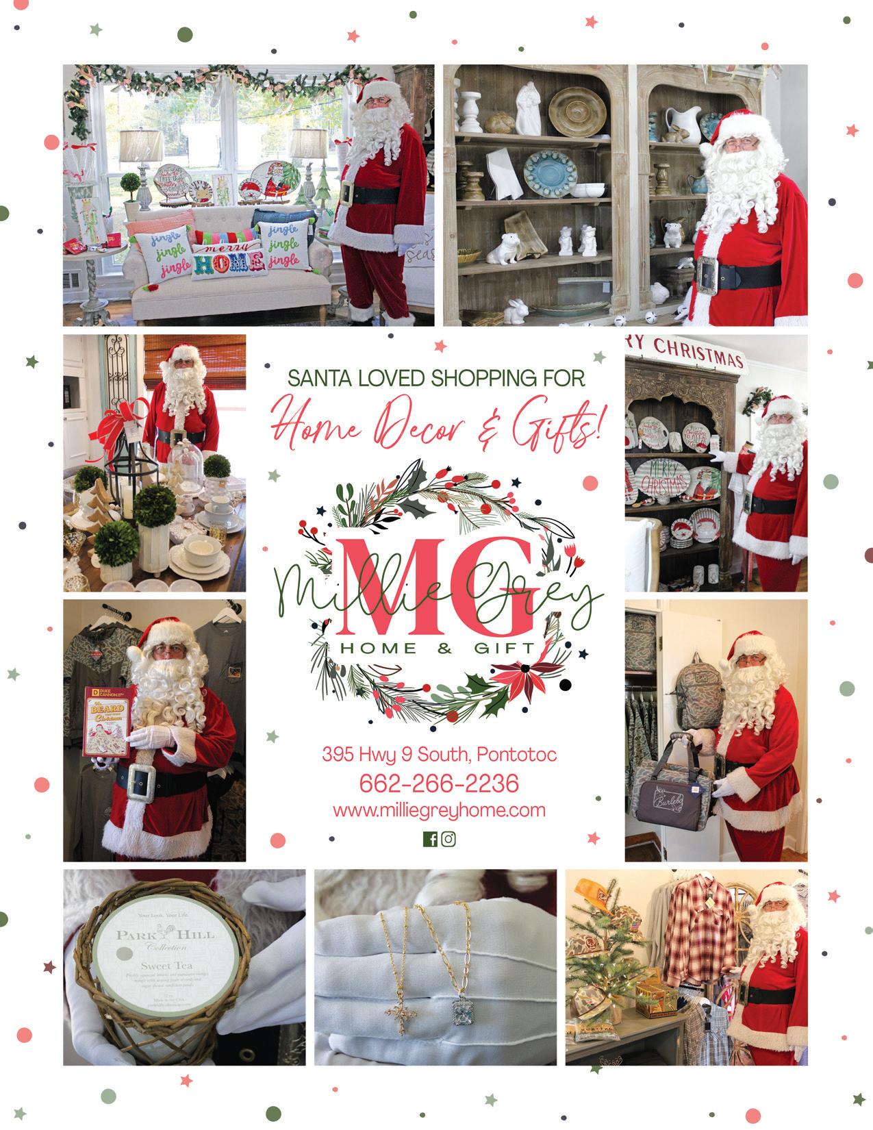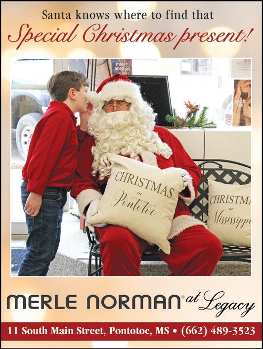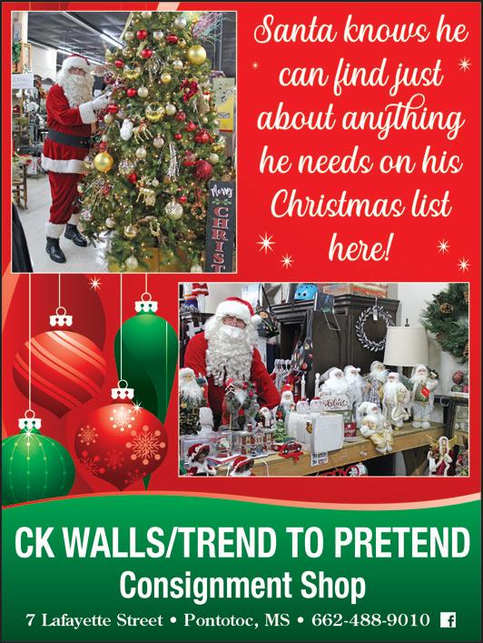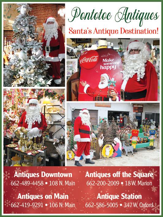Santa enjoyed strolling in downtown Ecru to see what all he could find to finish his list before taking his flight on Christmas Eve. Wood and Cloth was one of the places he stopped in and admired the beautifully decorated tree before going on his merry way. Santa went through out Pontotoc to visit in the stores to make sure everything was stocked up and ready for all his helpers. Make sure you check out all the things he saw in the pages of this magazine as well as catching up on all the local events and finding out how to enjoy the season to it’s fullest while you shop local.