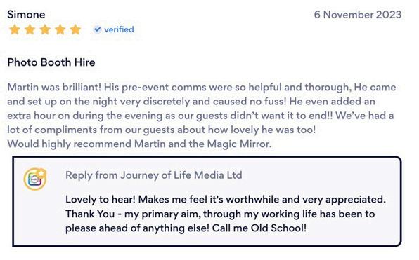 As I am already at the event, with the Wonderful Magic Mirror, it means I can heavily discount the Pro Handheld Event Photography For 3 hours Event Photography, the cost is normally £350, so effectively this is discounted by 50% as a combined package.
