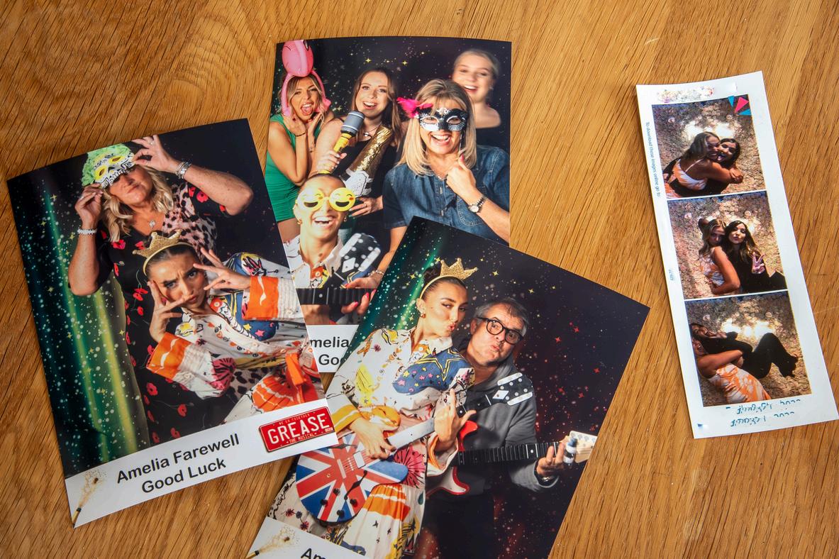 Our Magic Mirror produces instant, full colour 6"x4" prints, for your guests to take away with them, from your event. They are branded to your event... Please ignore the prints on the right, produced by a different Photobooth Company at a Wedding, they are displayed as a comparison to help you understand that we are the 'real deal', if you like a premiere experience!