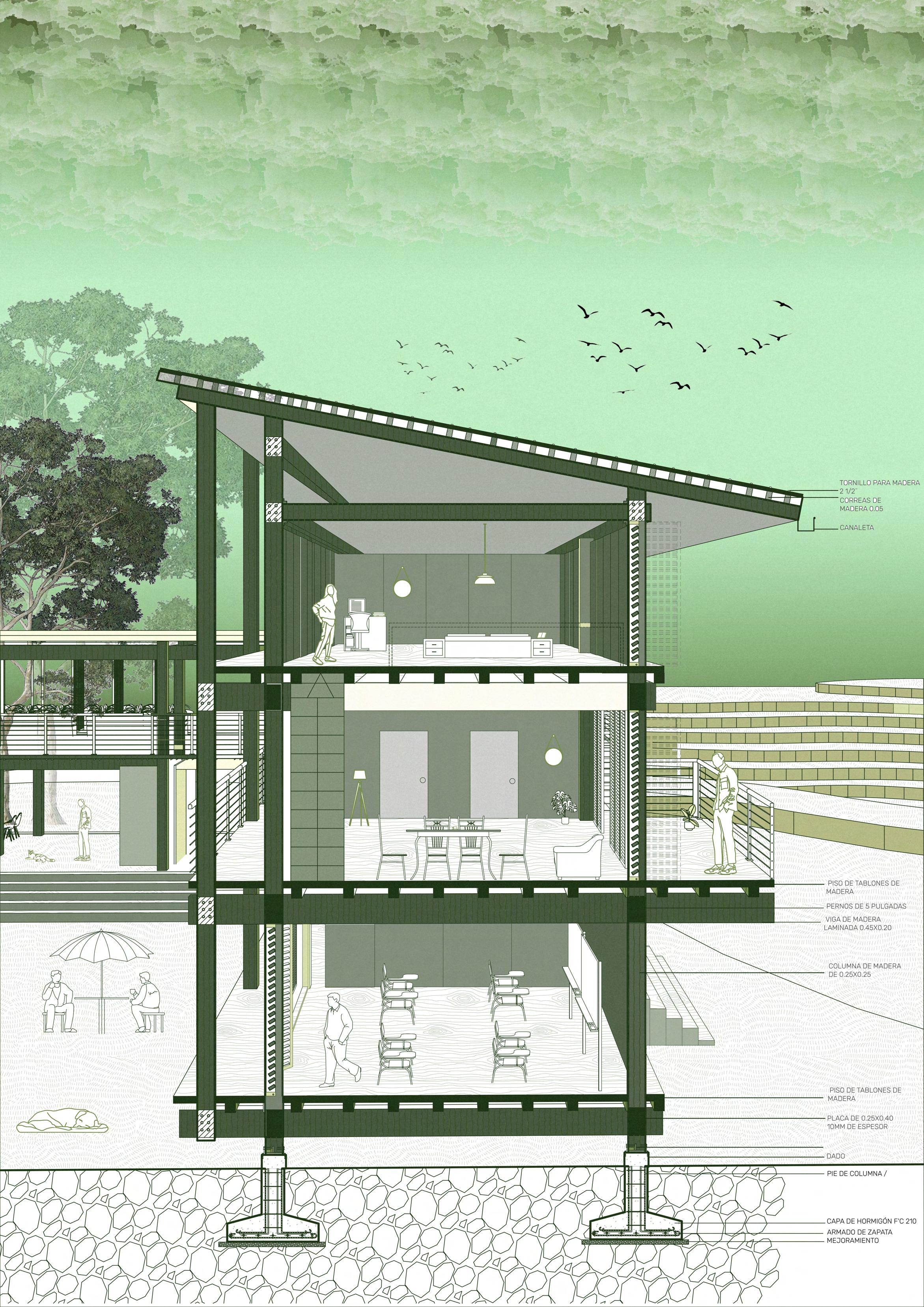 ILUSTRACIONESVIVIENDA COMUNITARIASoportes ecosistémicos y comunitarios para un hábitat resiliente.Autores:Jordan Jeanpierre Guaman PereiraJoseph Patricio Lucio Arcos