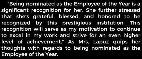 Mrs. Lapuz shines as JRU’s Employee of The Year awardee