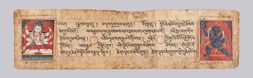 Frontispiece from The Great Destroyer of the Thousand Foes (Mahasahasrapramardani ) Sutra Manuscript . Tibet; circa 13th-14th century. Pigments on paper. 7 ¼ x 27 inches. Rubin Museum of Himalayan Art; C2004.33.1