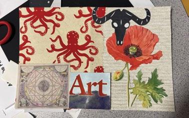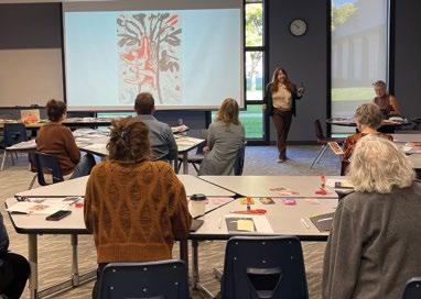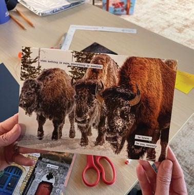 Each 90-minute workshop invited K-12 educators to explore artworks from the Montana Museum of Art and Culture and the JSMA through guided visual inquiry. Attendees then engaged in a close reading of Ada Limón’s poem After the Fire, followed by a hands-on collage activity. Using prompts drawn from both the visual and literary materials, educators created mixedmedia responses. At the end of each session, participants were invited to share what they created. This is an essential part of the community building and connection we make in every Art Heals session.