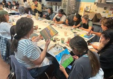“I reached out to the Northwest Indian Language Institute, Native American Indigenous Studies Program, Native American Student Union Program to develop a program that reflected the desires and needs of the community. It was a collaborative effort between our communities and organizations on campus, resulting in a wonderful workshop that allowed everyone to connect, reflect, and engage with the artwork and each other. There were many people from across the U.S., including Indigenous communities, who connected through similarities and differences, sharing the love and honor they give to the landscapes they painted and were inspired to create. It was a really needed workshop for our community here at UO. It’s something that I want to bring back every year, make sure that we’re continuing that collaboration with our UO Native American and Indigenous communities here, and just making sure that we are being an institution that opens a space to them, gives them space to be present, be loud, and see themselves in a museum, see themselves creating art and see themselves connecting and being a community here.” This workshop exemplified the museum’s commitment to centering Indigenous voices, fostering meaningful collaboration, and creating spaces where Native communities feel seen, heard, and empowered through art.