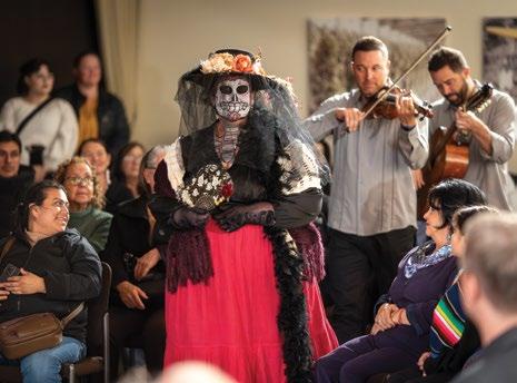 MEChA de UO volunteers and board members Diana Rendón-Chávez, María Aldana, Sebastián Flores; Adelante Sí President Armando Morales and Rebeca Urhausen, Executive Director; artist Estela Mendiola Salazar and Mauricio Hernández Colmenero; and musical Group Hermanos Herrera, in partnership with UO Division of Equity and Inclusion, organized Día de los Muertos on November 1st and 2nd at the JSMA. Rose Oakman led workshops in the studio while visitors enjoyed food and dance at the museum and others visited the galleries to see artworks on view.